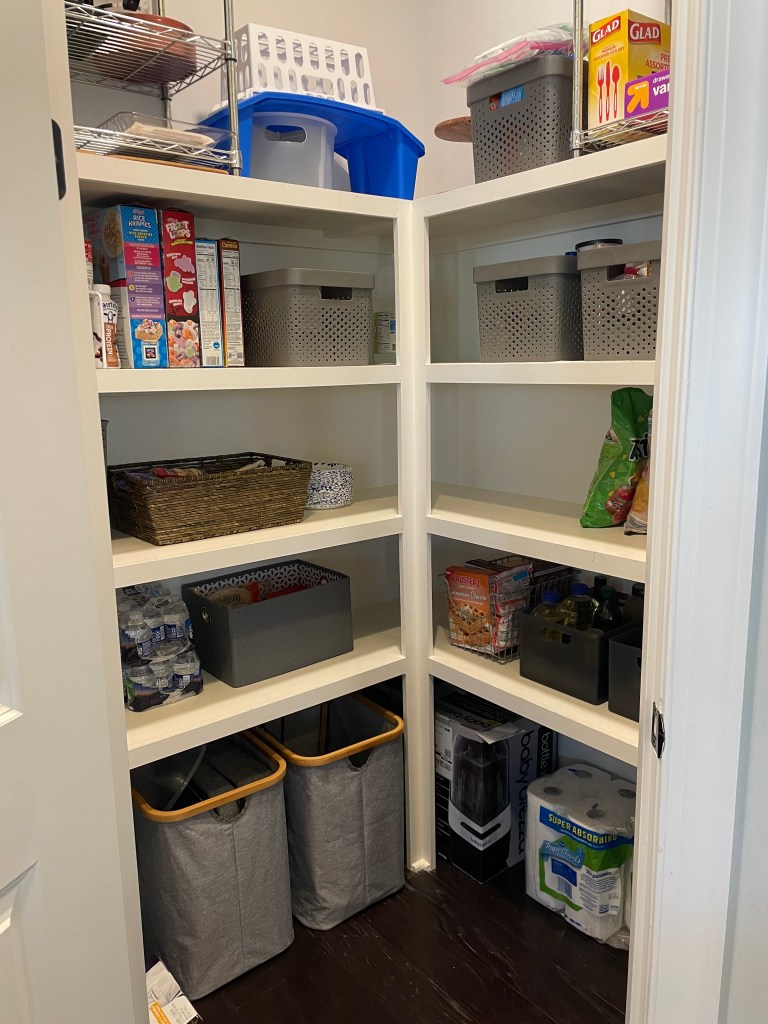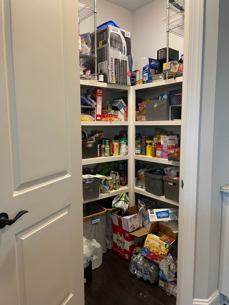 Now I know you’re probably wondering… where did all the food go?! I promise you, they only items that were tossed were either expired, or a cardboard box. Isn’t that crazy?! Look at how much space we were able to give back to the client by removing any unnecessary packaging, and putting like items together.